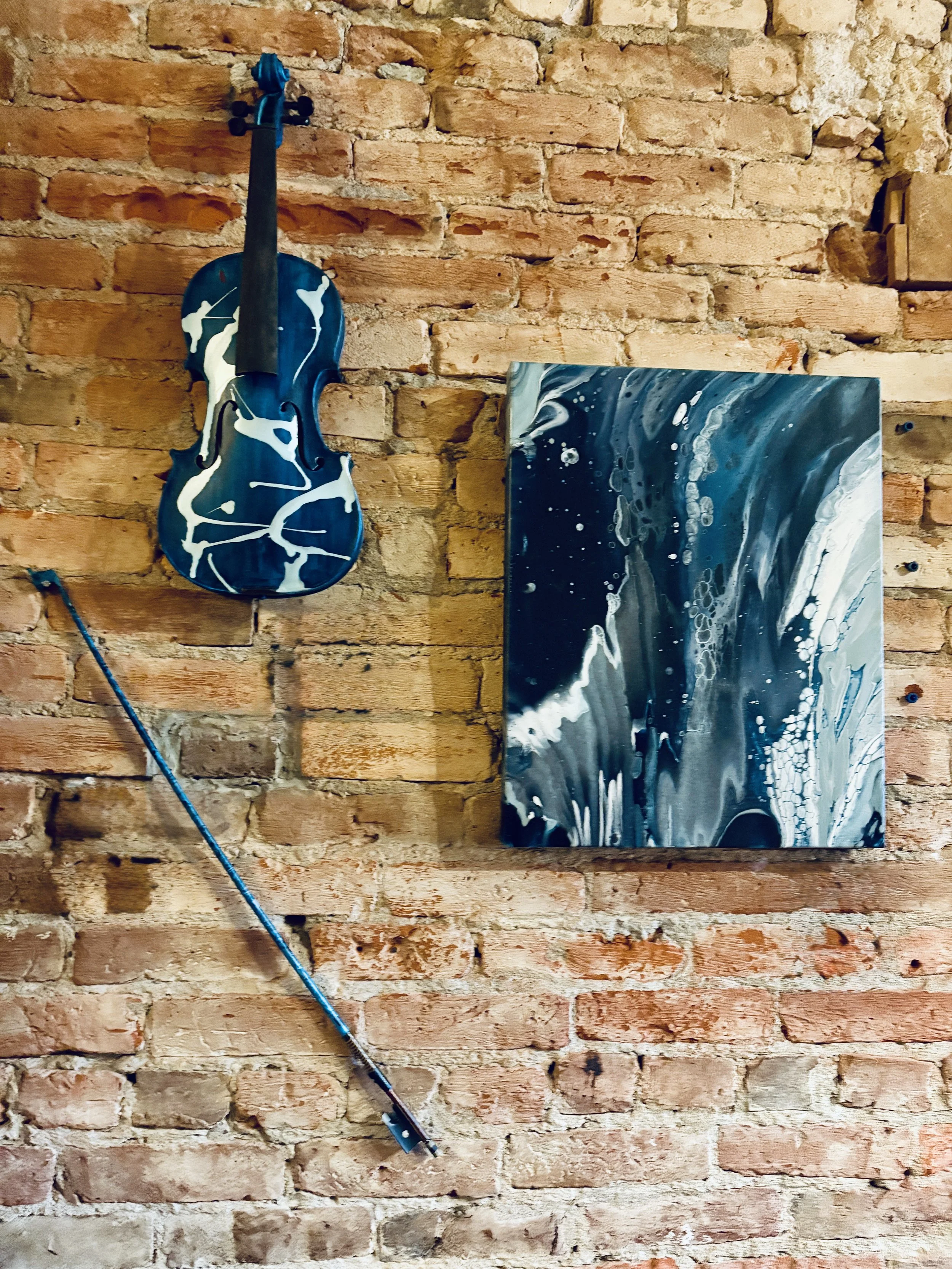 Quick View Violin Bow, authentic, as found, with blues painted on the stick and tip, otherwise natural Sold Out Quick View Warm Up 24 x 30" acrylic on canvas original painting Sold Out